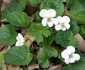 Sweet White Violet, Viola blanda, similar to Viola sororia, but with fragrant white flowers.