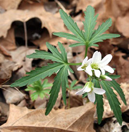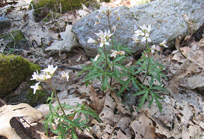 Cutleaf Toothwort, Dentaria laciniata, is a perennial native to North America east of the Rockies. Blooms April and May in our region.