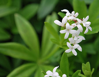Sweetscented Bedstraw, Galium odoratum, is a flowering perennial plant, native to Eurasia. It is also sparingly naturalized in scattered locations in the United States and Canada. It is widely cultivated for its flowers and its sweet-smelling foliage. If you see it it is likely to be an escaped cultivar. Bloom April through (not yet determined) in our region.
