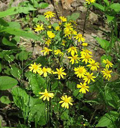 Golden Ragwort, Senecio aureus. A perennial evergreen that blooms April through July. Native to eastern North America. The flowers are about a half inch across abd grow on strons stems about 1 to 3 foot tall.