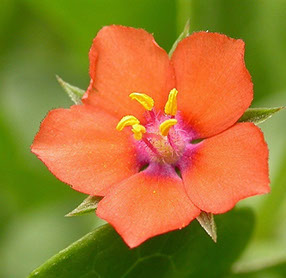 Scarlet Pimpernel, Anagallis arvensis, an annual native of Europe, Western Asia, North Africa and possibly parts of North America, now naturalized worldwide. This low growing plant does well in poor soil. Blooms June through September in our area. The flowers, which are samller than a dime, open only in direct sunlight.