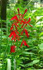 Cardinal Flower, Lobelia cardinalis, is a North American native that grows along stream banks and in marshes. It is common along undeveloped banks on the Delaware, Lehigh and Schuylkill Rivers, and can be found along most natural stream banks in our region that receive some sun. Blooms August into September. Plants may be up to four foot tall.