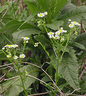 Ragweed, Ambrosia psilostachya, the notorious plant who's pollen is the cause of allergy misery for millions, is a perennial that is native to North America from the southerm provinces of Canada to northern Mexico. Very tiny flowers grow in clusters at the tips of the stems,
