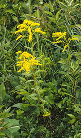 Early Goldenrod, Solidago juncea, a perennial native to eastern North America from the Gulf Coast to Labrador west to the Mississippi. Well named, it is the first of the goldenrods to bloom, starting in late July and early August. A great food for butterflies, it is cultivated to attract them. Grows three to 10 foot tall. See the Goldemrod Page.