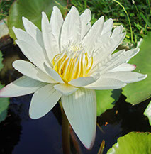 Water Lily, Nymphaea odorata, a native plant found in the shallow parts of lakes and ponds from central America to northern Canada. Blooms July through fall.