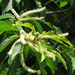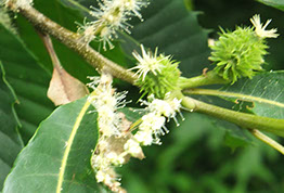 Photo showing both male and one female flower. Also pure American chestnut at Mariton.