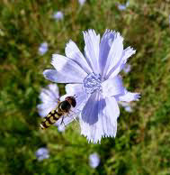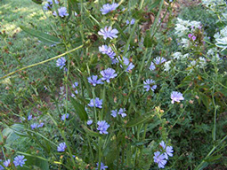 Chicory or Cornflower, Cichorium intybus, a European native naturalized across all of North America. Blooms July through fall. The wild version of the plant cultivated for salad greens, Belgian endive and whose roots are used as a coffee additive or substitute.