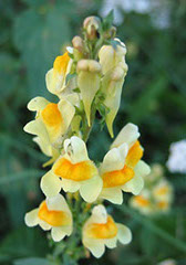 Butter and Eggs, Yellow Toadflax, Linaria vulgars, a Eurasian native and relative of the snapdragon, brought to this country as a garden plant, it has escaped and grows wild across all of North America. This perennial favors well-drained disturbed soils and sunny locations, and produces long-lasting cut flowers. Blooms late July through frost in our area.