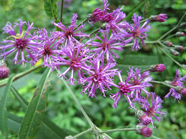 Ironweed: Vernonia gigantia, Vernonia altissima (tall Ironweed, Vernonia noveboracensis, (New York Ironweed) and several other similar and related species are native to eastern North America and prefer moist to damp meadows. They are all related to sunflowers. Altissima can reach 10 foot tall!
