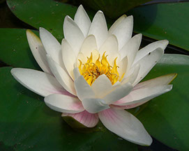 Water Lily, Nymphaea odorata, a native plant found in the shallow parts of lakes and ponds from central America to northern Canada. Blooms July through fall.