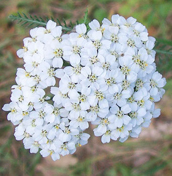 Yarrow, Achillea millefolium, is a perennial native to all parts of the northern hemisphere. In North America, it is a complex of both native and introduced plants and their hybrids. Botanically, it is either treated as ons species with several varities or as several species or sub-species. It grows to three foot tall with a single stem that does not branch except near the top, Blooms June through September.