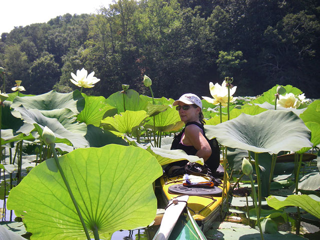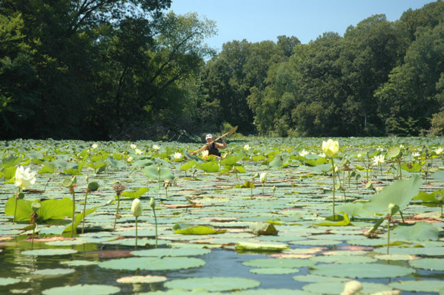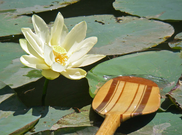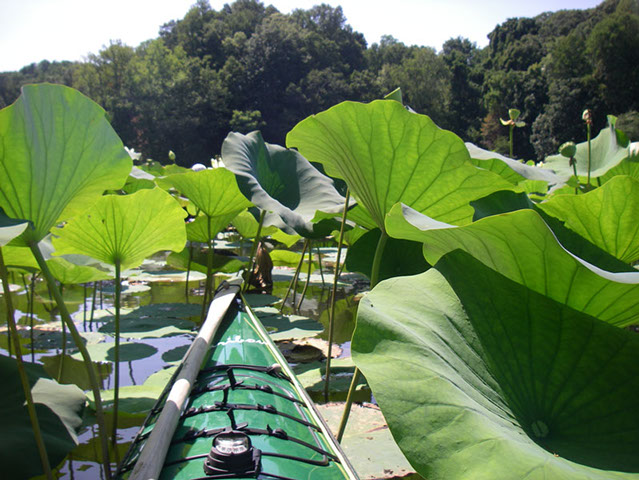 If you do an internet search, you will likely find both seeds for sale and poisons to kill it. Why? Because this beautiful plant fouls power boat propellers. It presents little problem for human powered and wind powered craft. Click here for photos of an AMC trip.