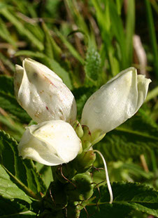 Turtlehead, Chelone glabra, is a perennial native to eastern North America from Canada almost to the Gulf Coast. Grows along river banks and in wetlands, and grows from one to four foot tall before blooming. Flowers from late July into September. A favorite food of deer.