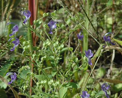 Great Blue Lobelia, Lobelia siphilitica, native to eastern and central North America, is a short-life perennial (lives just a few years) that blooms August well into fall in our area. Grows up to three feet tall and prefers wet to very moist soil.