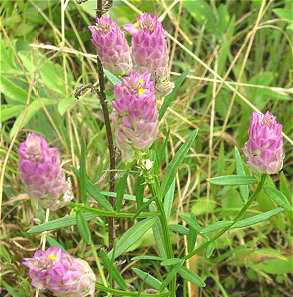 Milkwort, Field Milkwort or Purple Milkwort, Polygala sanguinea, an annual native to most of eastern North America, except for the coastal plain. Likes damp open fields and blooms August through fall.