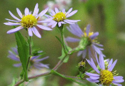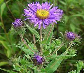 New York Aster, Symphyotrichum novi-belgii, (left) New England Aster, Symphyotrichum novae-angliae, (right) are perennials native to northeastern North America. They are the source of more than a thousand cultivated varities. Bloom August into fall.