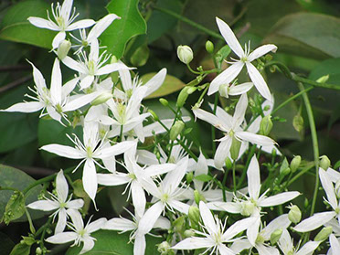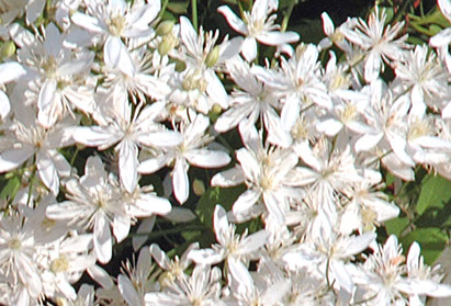 Clematis, Virginia Bower Vine, Clematis virginiana, a perennial climbing vine with fragrent flowers native to eastern North America. Blooms mid-summer through fall.