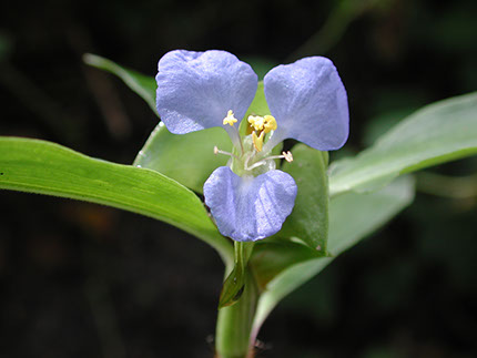 Virginia Dayflower, Commelina communis, a perennial native to mid-Atlantic and southeastern US, Flowers last one day, and bloom from July into fall.