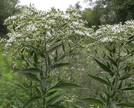 Other members of the large family of Boneset and Throughwort plants include Eupatorium sessilifolium , Upland Boneset (below, left) and Eupatorium resinosum, Pine Barrens Boneset (below right). There are more than 20 species known, and to make matters even more complicated, their native ranges overlap and they easily hybridize.