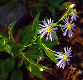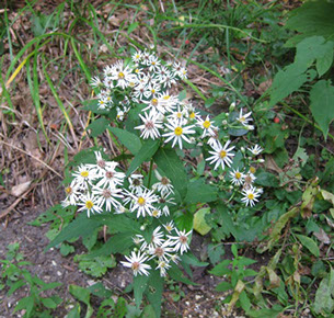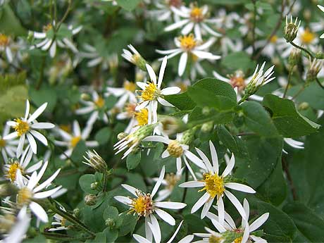 White Aster, Eurybia divaricata, formerly Aster divaricatus, is a perennial native to eastern North America, especially the Appalachians, found in the woods, along woodland verges and in open areas. The white flowers bloom from mid-August through fall in our area. Flowers have 10 to 15 rays with a yellow center and and rarely grows more than two foot high.