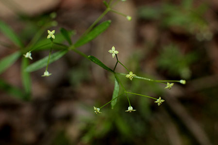 Fragrant Bedstraw, Galium triflorum, a perennial herb native to all of North America and naturalized through much of the world. It produces tiny flowers less than a quarter inch across and blooms in August and September, perhaps thoughout summer, though this has not yet been field verified for this web site.