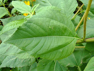 Virginia Smartweed or Virginia Knotweed or Jumpseed, Polygonum virginianum, like Pennsylvania Smartweed, is a member of the buckwheat family. It is a perennial native to the eastern half of North America from Canada to the Gulf Coast. Blooms August into the fall. Does well in full shade.