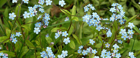 Small Forget-me-not or Bay Forget-me-not, Myosotis laxa, a semi-aquatic native perennial that likes the edges of lakes ponds and streams. The flowers are tiny, less that a quarter inch across. If you can provide any more information on bloom times contact me.