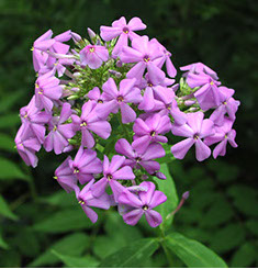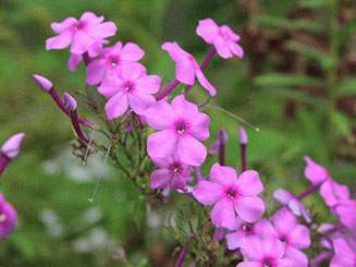 Phlox: Fall Phlox or Garden Phlox, Phlox paniculata, an Appalachian Mountain native perennial now widely cultivated as a garden plant. Blooms August into fall with five-petal flowers ranging from deep pink to nearly white.