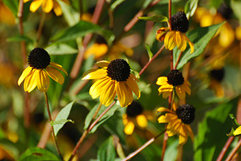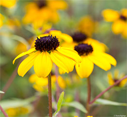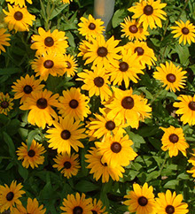 Blackeyed Susan, Rudbeckia hirta, North American native that blooms July into fall. It is an annual that likes moist meadows and woodland verges. Flowers are up to four inches across. The state flower of Maryland. Bloom summer into fall.