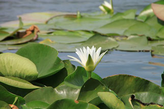 Water Lily, Nymphaea odorata, a native plant found in the shallow parts of lakes and ponds from central America to northern Canada. Blooms July through fall.